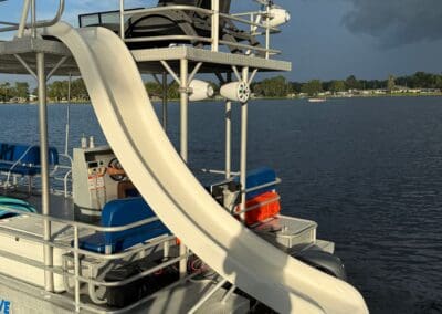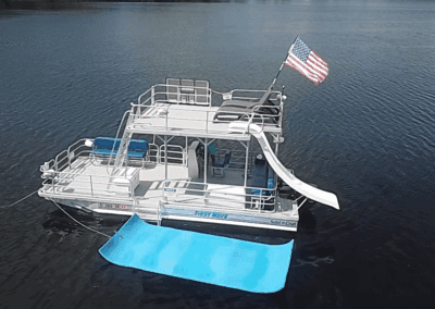 First Wave is our flagship vessel! She has received much love and hard work to create an enjoyable experience for guests. Have a blast on our double decker boat — relax on our floating water mat, slide or shoot hoops, and jam to your favorite tunes