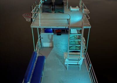 Our second-story basketball hoop brings the court to the water! Mounted on the upper deck, it's perfect for some friendly competition, trick shots, or just showing off your skills with a long-distance shot. Get ready to take your game to new heights — literally.