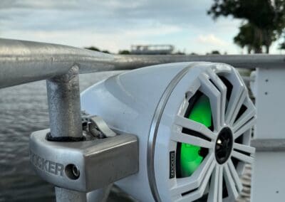 - Our premium sound system is designed to keep the vibes going wherever you are. With high-quality speakers on board and projecting outward, you’ll enjoy the same great music whether you’re dancing on the deck or floating nearby in the water — the party doesn’t stop when you step off the boat. Plus, with our wireless remote in your hands, you control the playlist and volume the entire time. It’s your party, your soundtrack.